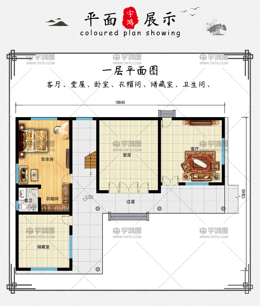 開間:18.64米 | 進(jìn)深:13.64米 | 占地面積:198.6平方米 | 建筑面積:350.4平方米 |