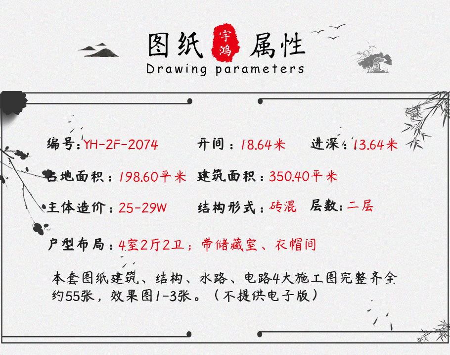 風(fēng)格:中式 | 層數(shù):二層 | 結(jié)構(gòu)形式:磚混結(jié)構(gòu) | 圖紙編號(hào):YH-A-2074 |