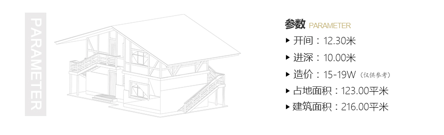 開間:12.3米 進深:10米 占地面積:123平方米 建筑面積:216平方米