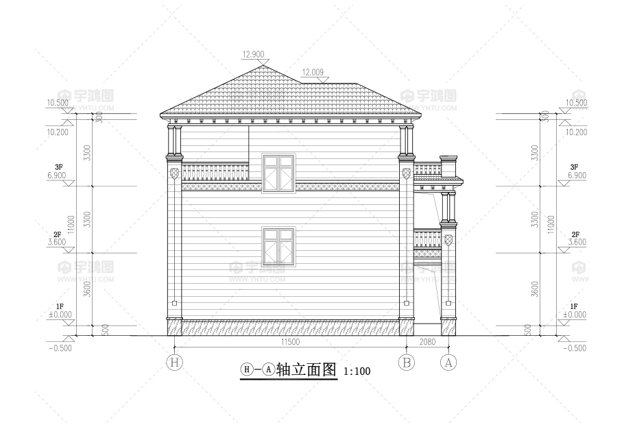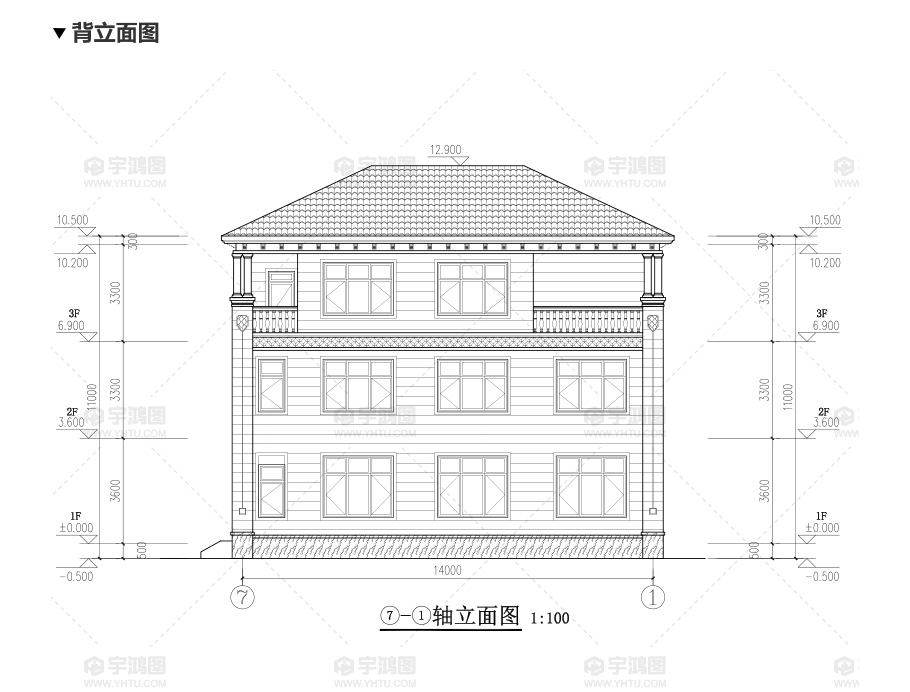 建筑立面圖:東立面圖,西立面圖,南立面圖,北立面圖,剖面圖;