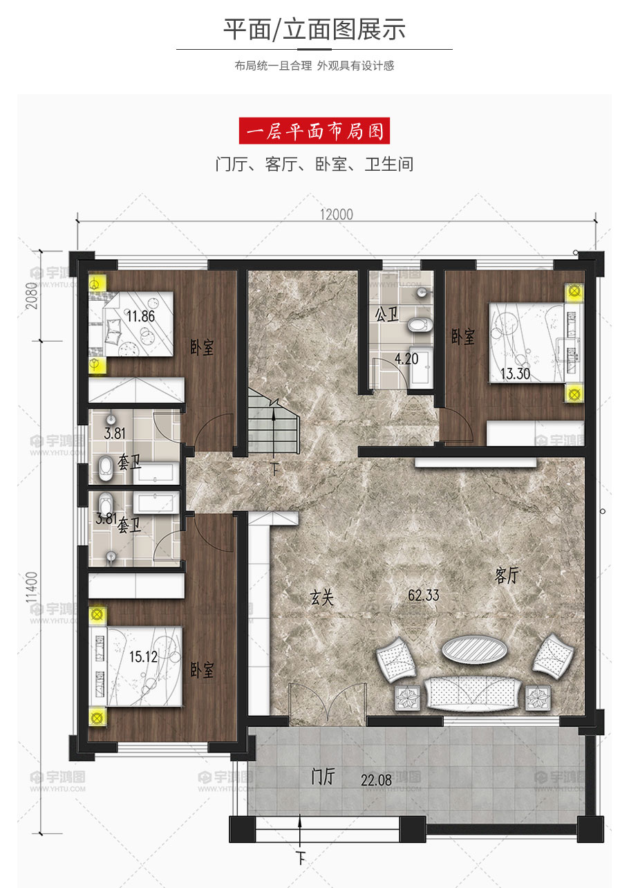 開間:12米 | 進深:13.68米 | 占地面積:132平方米 | 建筑面積:360.6平方米 |
