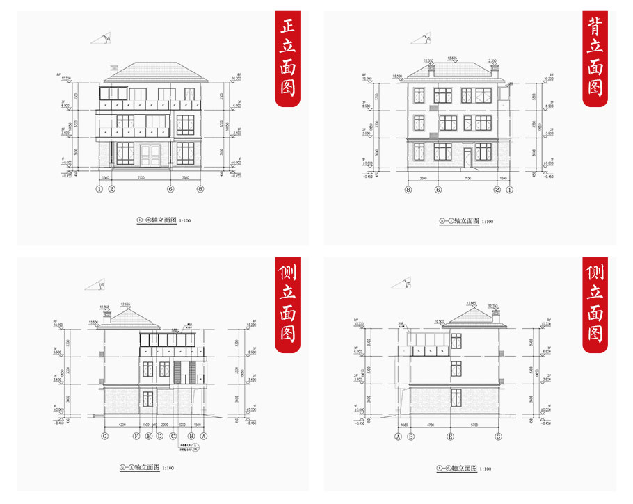 建筑圖: | 建筑平面圖:一層平面圖,二層平面圖,三層平面圖; 建筑立面圖:東立面圖,西立面圖,南立面圖,北立面圖,剖面圖; 大樣圖:樓梯詳圖,細部大樣,門窗大樣 |