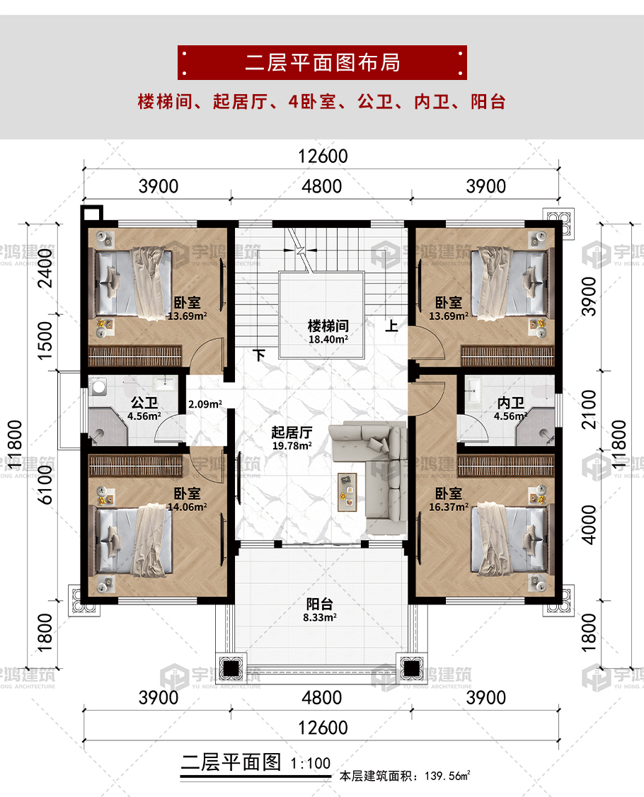 開間:12.6米 | 進深:11.8米 | 占地面積:139.56平方米 | 建筑面積:279.12平方米 |