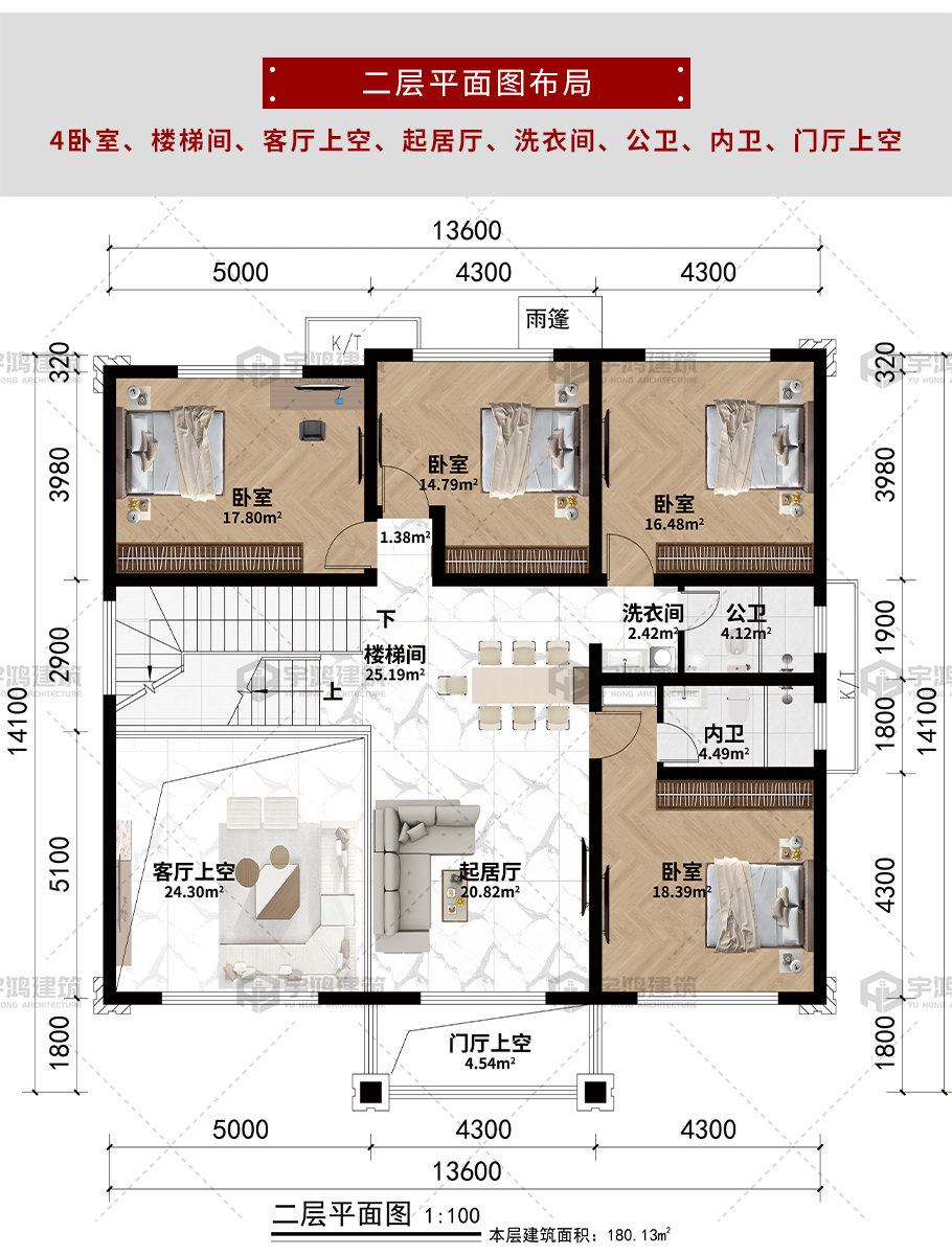 開間:13.6米 | 進(jìn)深:14.1米 | 占地面積:180.13平方米 | 建筑面積:360.26平方米 |